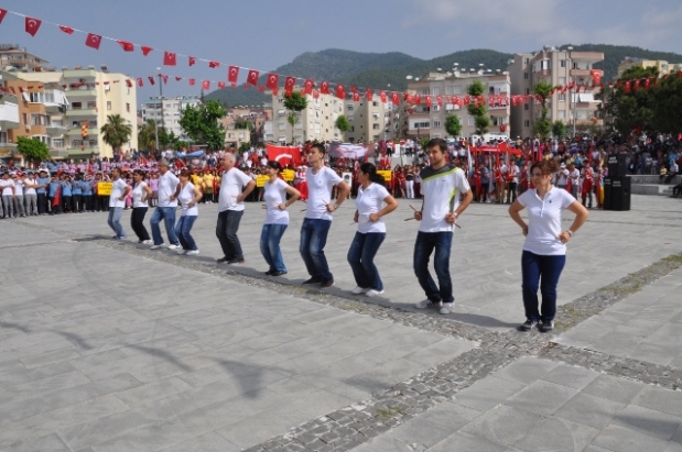 19 mayıs Atatürk'ü Anma Gençlik ve Spor Bayramı Anamur'da coşkuyla kutlandı. 19 Mayıs Atatürk’ü Anma Gençlik ve Spor Bayramı'nın 94. Yıldönümü Türkiye genelinde olduğu gibi Anamur’da da coşku ile kutlandı.Yeni Cumhuriyet Meydanı’nda gerçekleştirilen kutlama programı, Atatürk Bulvarı Otogar yanından öğrencilerin meydana yürüyüşü ile başladı. Ellerinde Türk Bayrakları ve Atatürk Posterleri ile Bulvardan Yeni Cumhuriyet Meydanına doğru yürüyen öğrenciler tek ses olarak Cumhuriyeti ve Atatürk'ü haykırdı. Gençlik ve Spor İlçe Müdür Vekili Yeter Bal’ın öğrencilerle Atatürk anıtına çelenk koyması ile başlayan program, saygı duruşu ve Şehit İbrahim Armut Anadolu Öğretmen Lisesi Müzik Öğretmeni Elif Ayhan’ın şefliğinde okunan İstiklal Marşı ile devam etti.Törende Gençlik adına konuşmayı Anamur Anadolu Lisesi 9/B sınıfı öğrencisi Sıla Acabey yaptı. Acabey konuşmasında binlerce şehit verilerek sıkıntı ve yokluklar içerisinde büyük özverilerle kurulan ve gençlere emanet edilen Türkiye Cumhuriyeti'ni sonsuza kadar korumak ve yaşatmak, gelecek kuşaklara en iyi şekilde aktarmak en başta gelen görev ve sorumluluğumuzdur.” Dedi.Törende Şehit İbrahim Armut Anadolu Öğretmen Lisesi 11. Sınıf öğrencisi Ahmet Buğra Yavuz Atatürk’ün gençliğe hitabesini okudu, gençlik de cevaben, Anamur Lisesi Öğrencisi Mevise Alaca’nın öncülüğünde gençliğin Ataya cevabını okudu. Anamur Kaymakamı Cengiz Cantürk, Belediye Başkanı Mehmet Türe, Garnizon Komutanı Albay Ekrem Kesikbaş, Cumhuriyet Başsavcısı Devrim Yenikomşuoğulları, siyasi partiler, sivil toplum kuruluşları ve vatandaşlar büyük beğeni ile programı izlediler.TÜBİTAK ve Milli Eğitim Bakanlığının ortaklaşa yürüttüğü bilim fuarında dereceye giren öğrencilere ve danışman öğretmenlere ödüllerinin verildiği kutlamanın devamında Anadolu Lisesi, Ticaret Meslek Lisesi, Anamur Lisesi ve Şehit İbrahim Armut Anadolu Öğretmen Lisesi ve Kız Teknik Meslek Lisesi öğrencilerinin sergilediği coşkulu folklor oyunları ve halaylar göz doldurdu.Gençlik ve Spor bayramında Anamur Halkoyunları yetişkinler grubunun gösterisi de ayakta alkışlandı.