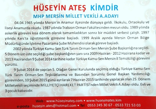 Türk Tarım Orman Genel-Sen Genel Başkan Yardımcılığı görevinden istifa ederek Mersin'den Milletvekili aday Adayı olan Anamurlu Hüseyin Ateş Anamur'a gelerek seçim çalışmalarına başladı.