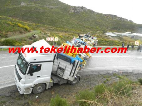 Antalya'dan Mersin istikametine gitmekte olan 71 DN 107 plakalı katı atık yüklü geri dönüşüm tırı kaza yaptı. Havanın yağışlı olması nedeniyle kayganlaşan yolda tır sürürcüsü kontrolü kaybederek aracı geri geri salmaya başladı.Tırın geri kaçmasıyla dev araç yola gerildi. Olayda ölüm veya yaralanma olmazken araçta da kayda değer bir hasar oluşmadı.