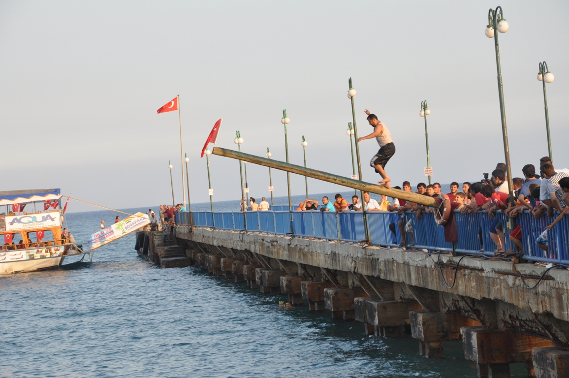 Anamur İskelesinde bu yıl 87.si kutlanan Denizcilik ve Kabotaj Bayramı, özellikle yağlı direk ve yüzme yarışmaları, denizden tabak kapma yarışları ile deniz teknelerinin tur gösterileri göz kamaştırdı.  Anamur Belediyesi ve Liman Başkanlığının ortaklaşa organize ettiği Kabotaj Bayramı, deniz şehitleri adına İskele ucundan denize atılan çelenkle başladı. Anamur Kaymakamı Cengiz Cantürk, Belediye Başkanı Mehmet Türe, Cumhuriyet Başsavcısı Mehmet Akif Dönertaş ve Anamur Liman Başkanı Muammer Merev bıraktılar. Saat 18:00’de başlayan Deniz Bayramı kutlamaları saygı duruşu ve İstiklal Marşı’nın okunmasının ardından Liman Başkanı Muammer Merev’in konuşması ile devam etti. Denizciliğin ülkemiz için önemi ve tarihçesi hakkında geniş bir anlatım gerçekleştiren Merev, Anamur iskelesinin yıkılarak yerine 500 metre uzunluğunda ve uç kısmında deniz uçaklarının kalkış yapabileceği rampası olan bir iskele yapılacağının müjdesini verdi. Merev bu projenin 2014 kalkınma programına alınması için yoğun mücadele veren Anamur Kaymakamı Cengiz Cantürk’e Anamur adına teşekkür etti. Bu ay içerisinde etüd-projesinin ihaleye çıkarılacağını kaydeden Merev, Anamur iskelesinin imar sürecinin tamamlanması ile projenin 2014 yatırım programına alınmasına çalışılacağını söyledi. Yeni iskelenin Anamur’da tarım ve turizmin gelişmesinde büyük katkı sağlayacağını kaydeden liman Başkanı Muammer Merev; “İskelenin en uç kısmına yapılacak rampa, deniz uçaklarının iskele ucundaki aprona çıkarak yolcu alabilecek ve indirme yapabilecektir.” Dedi. Denizcilik ve Kabotaj Bayramında Anamur Belediyesi Kültür Sanat ve Gençlik Merkezi Folklor ekibinin gösterileri büyük beğeni topladı. 14-16 yaş kızlar, 14-16 yaş erkekler ve 16 yaş üstü erkeklerin yüzme yarışmaları ve gençlerin yağlı direkten bayrak alma yarışmaları deyim yerindeyse nefes kesti. 1 Temmuz akşamında kutlanan Kabotaj Bayramını izlemeye gelen vatandaşların Anamur sahilini doldurarak renkli bir görüntü oluşturmaları görülmeye değerdi.  14-16 yaş yüzme yarışmalarında birinci gelen Gülümser Öncü, ikinci gelen Başak Bahçeli ve Selime Deniz Günal’a ödüllerini Anamur Kaymakamı Cengiz Cantürk verirken 14-16 yaş erkeklerde ilk üç dereceyi alan M. Yaşar Kabakçı, Ata Kemal Türkay ve Abdurrahman Gültekin’e ödüllerini Belediye Başkanı Mehmet Türe verdi. 16 yaş üzerinde birinci gelen Volkan Yıldız, Selim Taşpınar ve Süleyman Şık ise ödüllerini Cumhuriyet Başsavcısı M. Akif Dönertaş’ın elinden aldılar. 16 yaş üzeri kategorisi yüzme yarışmasının birincisi Volkan Yıldız aynı zamanda yağlı direkten bayrak kapma yarışının da birincisiydi. Volkan’a kupayı Sahil Güvenlik Komutanı Kıdemli Üsteğmen Fatih İkinci verdi. Sörf yarışlarının birincisi Aslı Bayındır, ikinci Hale Bozkurt ve üçüncü Osman Deniz’e ödül ve plaketlerini Anamur Liman Başkanı Muammer Merev ve Anamur İlçe Jandarma Komutanı Yzb. Hayrettin Fidan verdi. Kutlamalara katılanlara Temel Bey Muz Sarartma ve Nomia Tekne turları sahibi Veli Temel muz ikramında bulundu. Muz-Bir Başkanı Mehmet Güzel’de yağlı direk yarışmasının galibi Volkan Yıldız’ı altın ile ödüllendirirken Yıldız da “Gücümü Anamur Muzu’ndan alıyorum.” Diyerek hem muzu tanıttı hem de Muz-Bir Başkanına teşekkür etti. Kutlamaların sonunda Kaymakam Cengiz Cantirk başta olmak üzere protokol ve sporcular birlikte objektiflere poz verdiler.Tekne turlarını düzenleyen Anamur Balıkçılar ve Su Ürünleri Kooperatifi Başkanı Mümin Tufan ve Bozyazı Balıkçılar ve Su Ürünleri Kooperatifi Başkanı Salih Erdem’e de teşekkür plaketinin verildiği törende Liman Başkanı Muammer Merev, gelecek yıl daha büyük bir katılım beklediklerini dile getirerek kutlamalara katılan tüm Anamur halkına teşekkür etti. Tören sonunda Nomia tekne turu açılışları için kurban kesildi dualar okundu. Törenin sunumunu Anamur Ortaokulu Müdür Yardımcısı Zeki Rıdvan Yalçın Rıdvanağaoğlu yaptı.