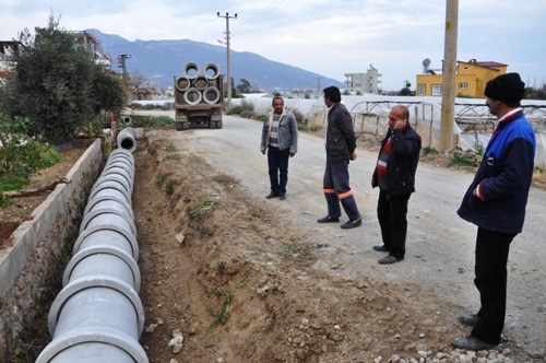 Orman İşletme Müdürlüğü'nden başlanarak Hocalar Caddesi girişine kadar tamamlanan parke yolun devamı için gereken altyapı çalışmaları sürüyor. Hocalar caddesi'nde yer alan derelerin ıslahı için getirtilen büzler dün Fen İşleri Müdürlüğü ekipleri tarafından döşenmeye başlandı. Yaklaşık 1 km'lik alanda yer alan dereler ıslah ediliyor. Daha önce parke yol çalışması kapsamında Bahçe Mahallesi'nde ayrıca mezarlık civarında da büz döşeme ve mezarlık kapalı alan ile çeşme çalışması gerçekleştirilmiş Bahçe Mahallesi sakinleri 'Sayın Başkanım biz sizden yol istemiştik, siz bize havaalanı yaptınız' şeklinde teşekkür pankartı asılmıştı.