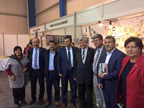 MYD standında yer alan dernek üyesi yazarların kitaplarını inceleyen Başkan Mehmet TÜRE’yi yazarlar standında başka bir sürpriz karşıladı. Mut Belediye Başkanı Nebi YILMAZ’da yazarlar derneği standını ziyarete geldi.
